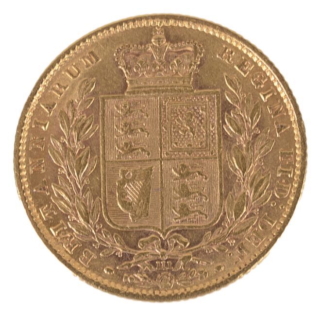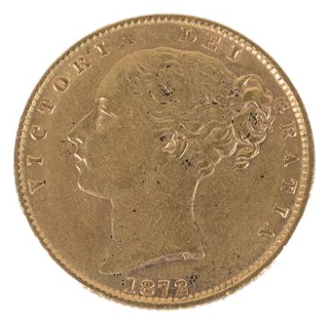 A Queen Victoria 1872 gold full sovereign, die number 111