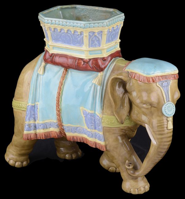 A Royal Worcester majolica glazed vase modelled as an elephant