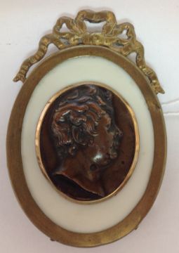 Condition: The bronze cameo with some wear and a few 'nicks'. The frame is loose. Overall average condition.