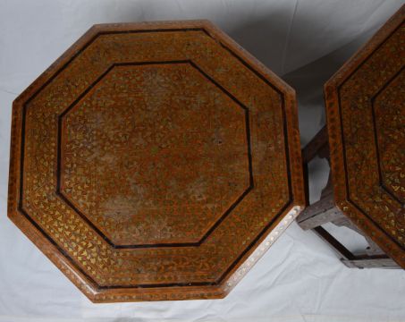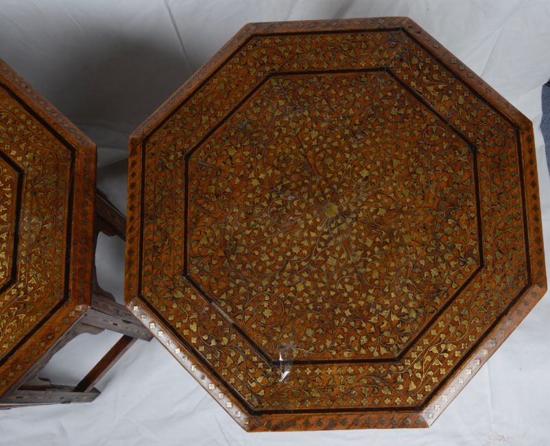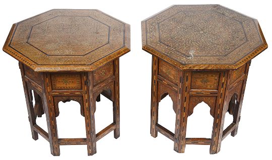 A pair of hardwood Moroccan inlaid occasional tables