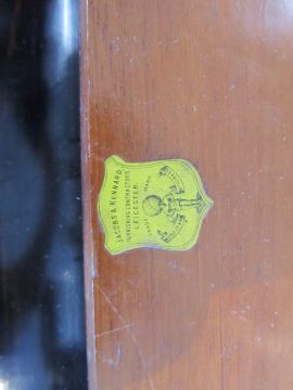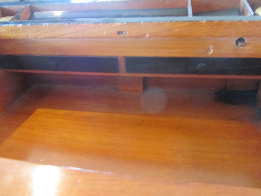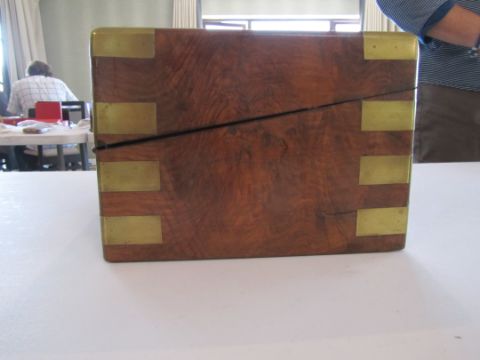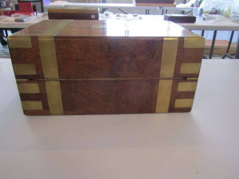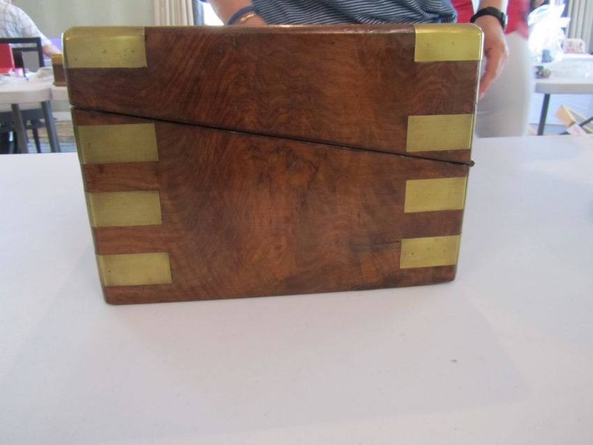 Condition: Fair to good, with wear and fading to exterior, surface scratches, slight cracks to veneer at side.