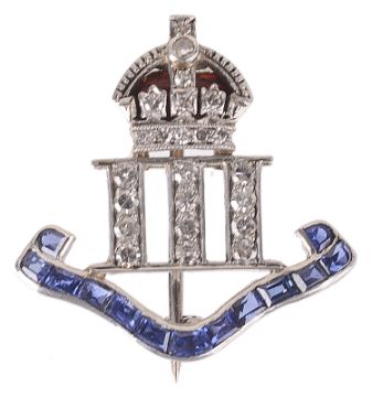 A '3rd Indian Cavalry', sapphire, ruby and diamond set sweetheart brooch