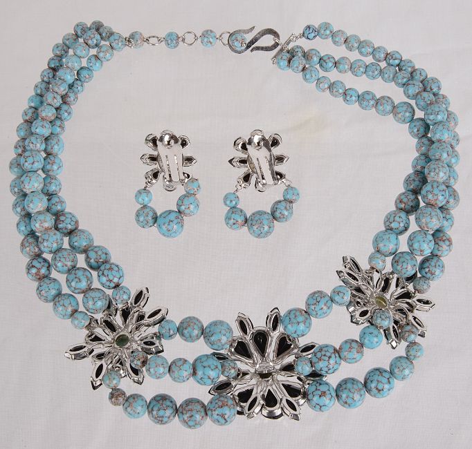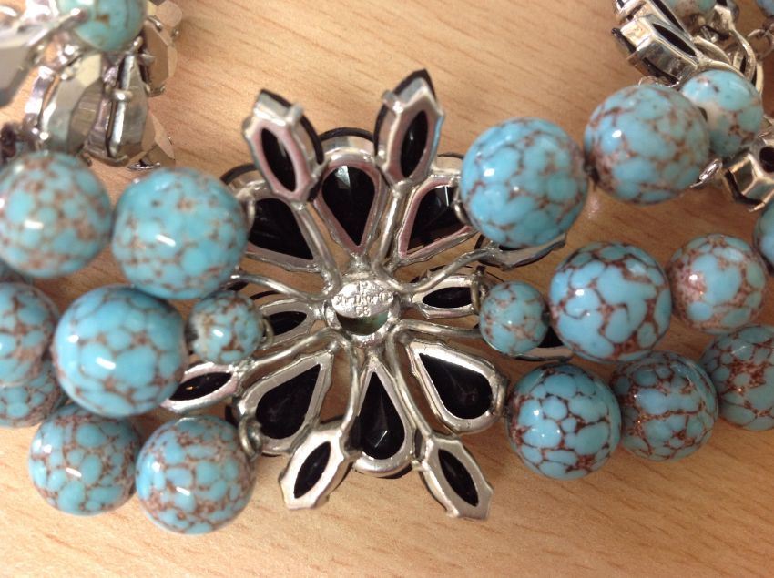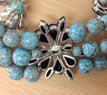 A vintage 1958 Christian Dior designer, turquoise glass bead festoon necklace