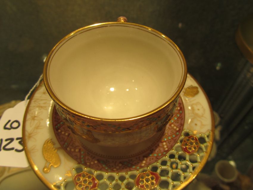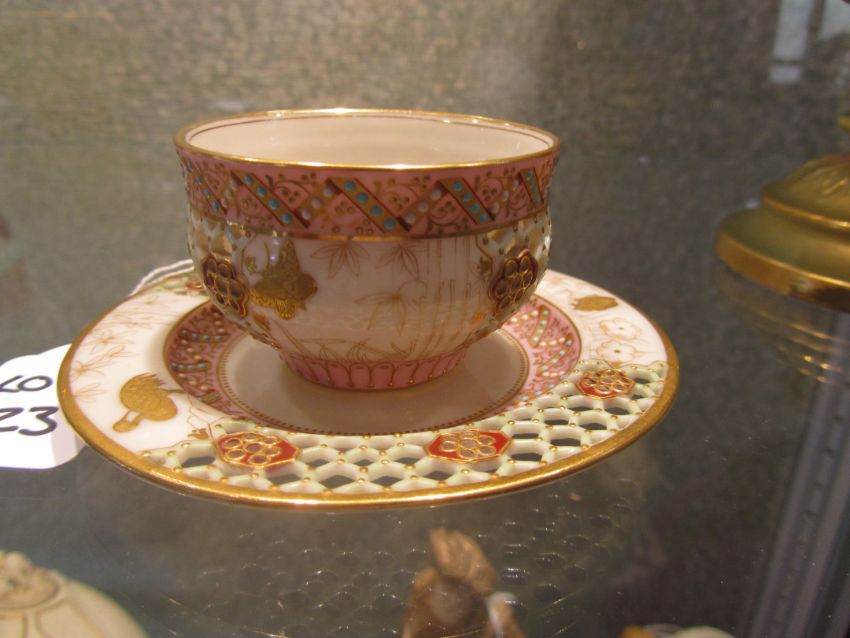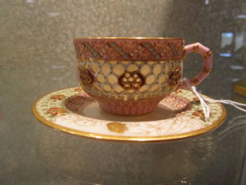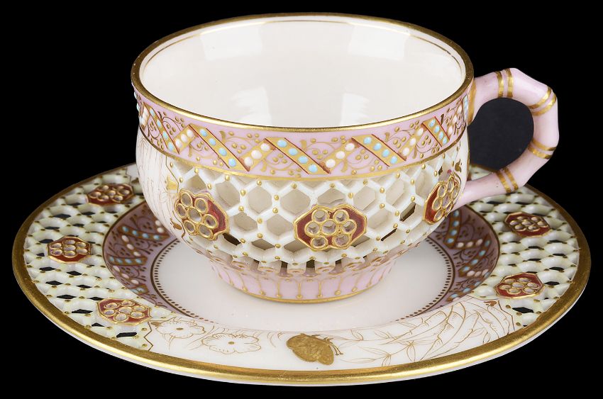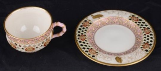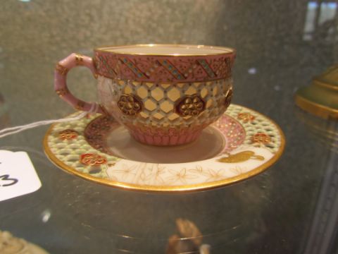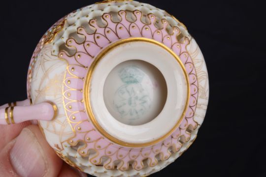 A Royal Worcester reticulated cabinet cup and saucer attributed to George Owen