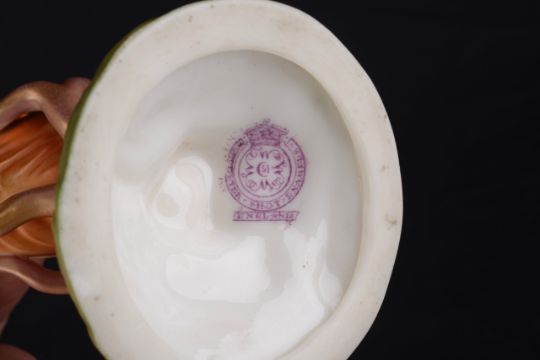 with puce printed mark to base and unusual Worcester shot enamel England' mark