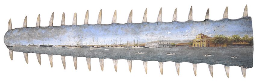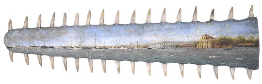 A late 19th century hand painted sawfish rostrum