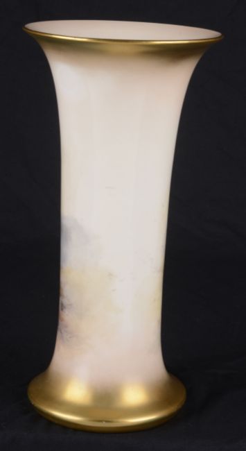 A Royal Worcester trumpet vase hand painted by James Stinton