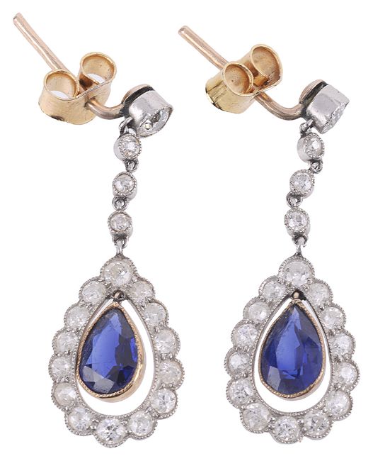 A pair of delicate Edwardian style sapphire and diamond drop earrings