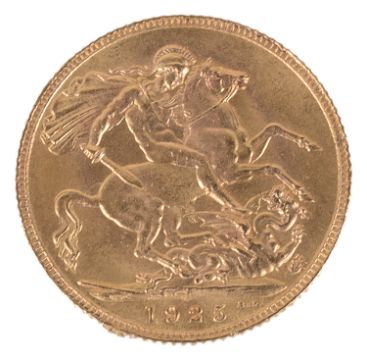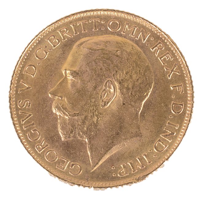 George V facing left, with St George slaying the dragon reverse, high rimmed, in box.