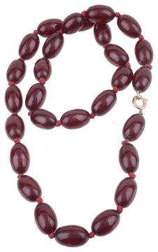 the cherry coloured beads of even size, each approximately 2 cm. in length