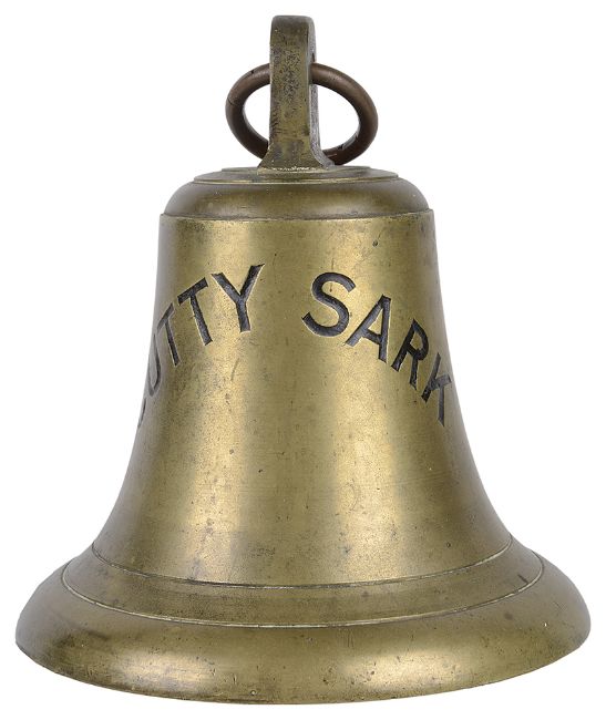 with copper ring above the bronze bell, the body with 'Cutty Sark' highlighted in black.