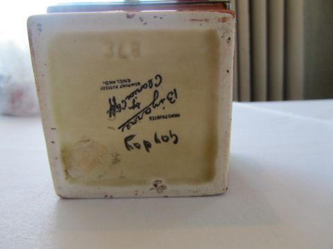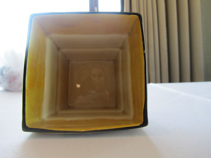 of tapering stepped square form painted with brightly coloured floerheads, print stamp to base, impressed no.368.