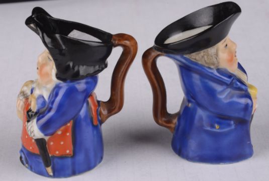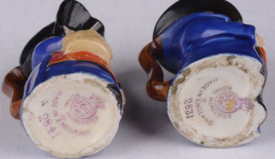 modelled seated in blue coat, with printed mark to base and shape number 2831, together with a similar model of Mrs Toby shape number 2841 (2)