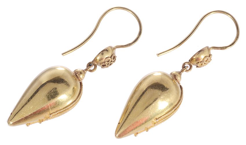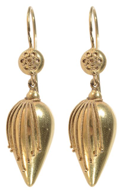 A pair of Continental Victorian style .585 gold drop earrings of Etruscan design