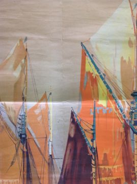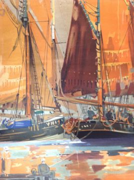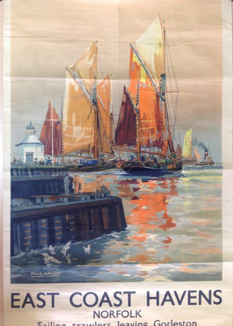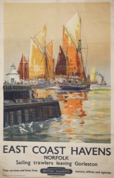 Railway poster East Coast Havens Norfolk 'Sailing trawlers leaving Gorleston'