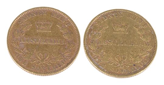 Two Queen Victoria gold full sovereigns, Sydney Mint
