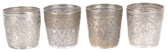 A set of four Indonesian white metal beakers, early 20th century
