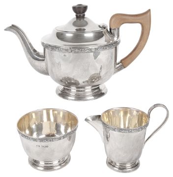 weight: 22ozt approx; teapot: 15cm high; cream jug: 10cm high; sugar bowl: 6.8cm approx.