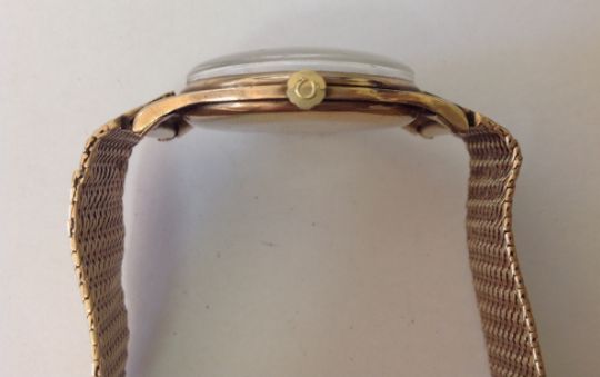 A 9ct gold Omega gentleman's wristwatch, with mesh bracelet