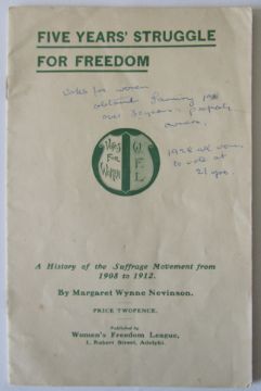 x) 'Five years' struggle for freedom' by Margaret Wynne Nevinson, pamphlet