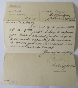 vii) Four other pieces of ephemera including two letters to Kate one from her sister Margaret whilst still in prison reading 'all your friends ask very kindly after you, and are looking forward very much to seeing you home again', and another from Hannah Lomax; a memo from Holloway to Kate noting that they are unable to trace the lady Kate is looking for - and another similar
