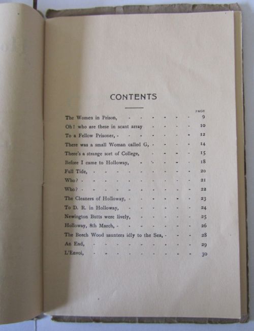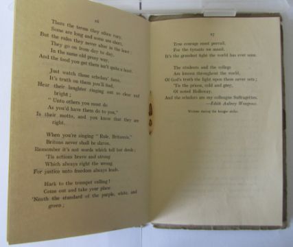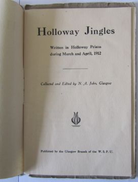 iii) John, Nancy. A. 'Holloway Jingles' a collection of poems written by the Suffragettes contained within a pictorial printed outer green covers with, images of the inside of the cells. Possibly a first edition, with two poems by Kate entitled 'Who?' and 'The cleaners of Holloway'