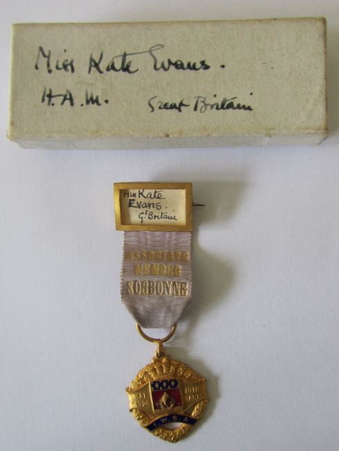 ix) 'Associate member of the Sorbonne' medal presented to Kate Evans May/June 1926 by the International Women's Suffrage Alliance