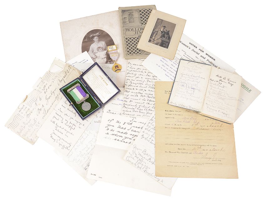 A rare silver suffragette Hunger Strike medal and a fascinating archive of letters, books and ephemera relating to suffragette Kate Williams Evans