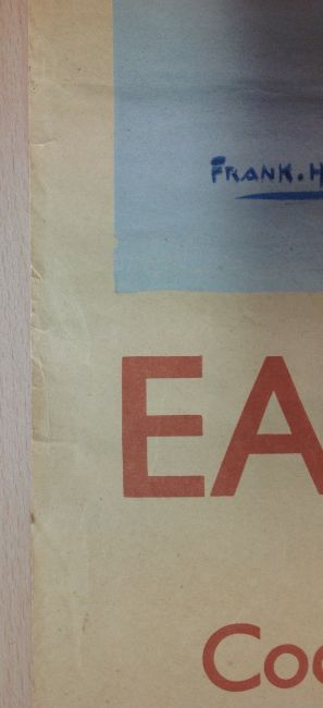 Condition: Yellow colour discolouration throughout. Red writing is paler and not as strong as it once was. The image is good and clear but again not as strong as originally was. Has been rolled up and stored in drawer. Some creasing and three definite folds but no major creasing/ tears/damage. Overall in good to fair condition.