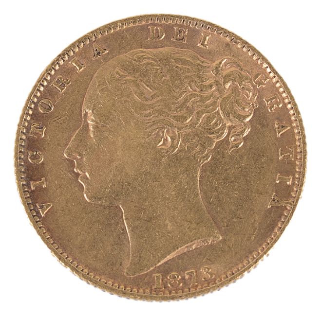 A Queen Victoria 1873 gold full sovereign, die number 12