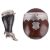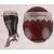 Condition: Fair to good, with wear to each, the white metal mounts on the burra bean are not hallmarked, the bean is cracked at the front, wear to the leather stocking on the leg vesta.