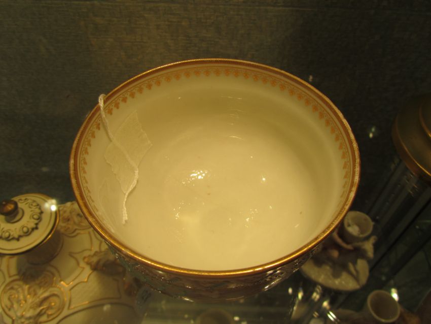 Condition: Fine haircrack across base visible tp interior and exterior. Gilt rim with some wear. Please note that in our opinion this is in the 'Style of George Owen' and potential buyers should satisfy themselves.