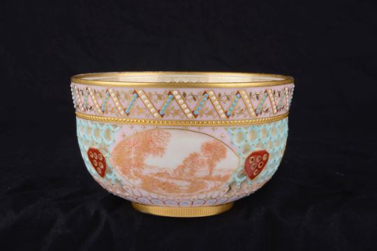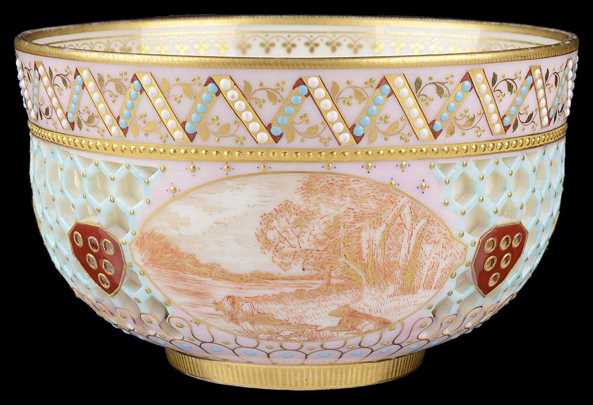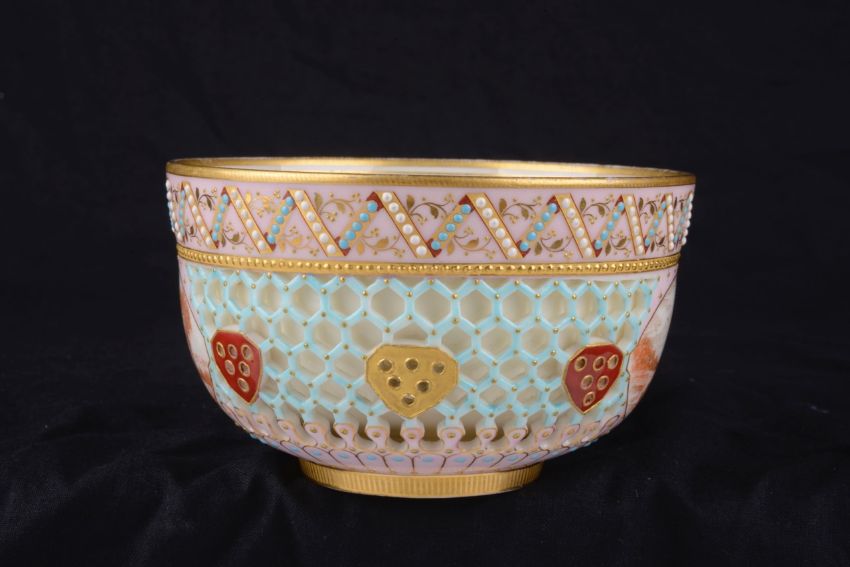 A Royal Worcester cabinet reticulated bowl attributed to George Owen