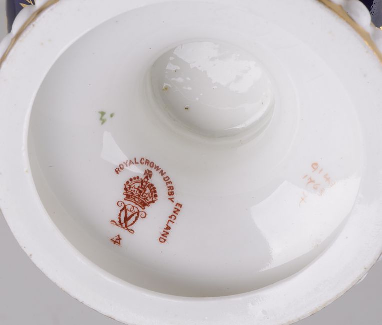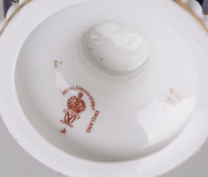 A pair of Royal Crown Derby cobalt blue ground vases, circa 1919,