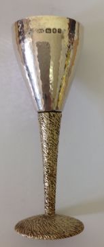 A pair of parcel-gilt silver sherry goblets, hallmarked London 1975