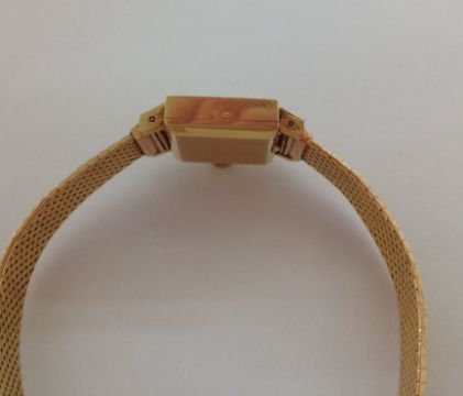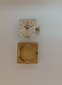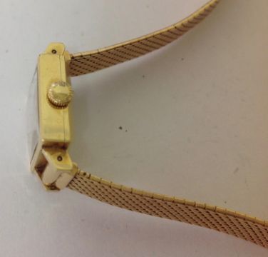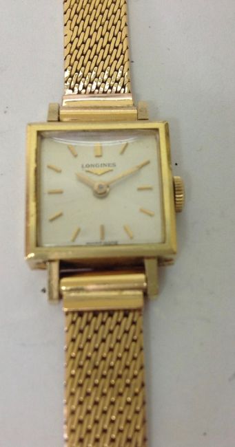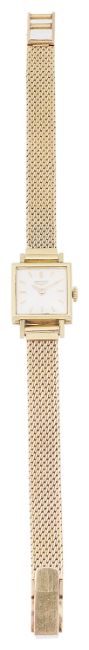 the square dial with baton hours, Longines logo, in a square case, with mesh link bracelet with clasp, movement number 12538044 320, case number: 7362 2 24, case hallmarked 18k.
