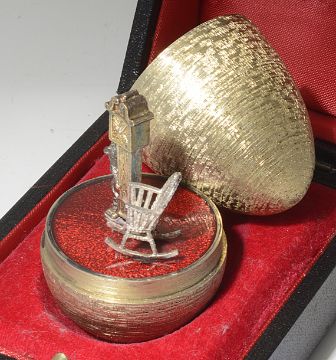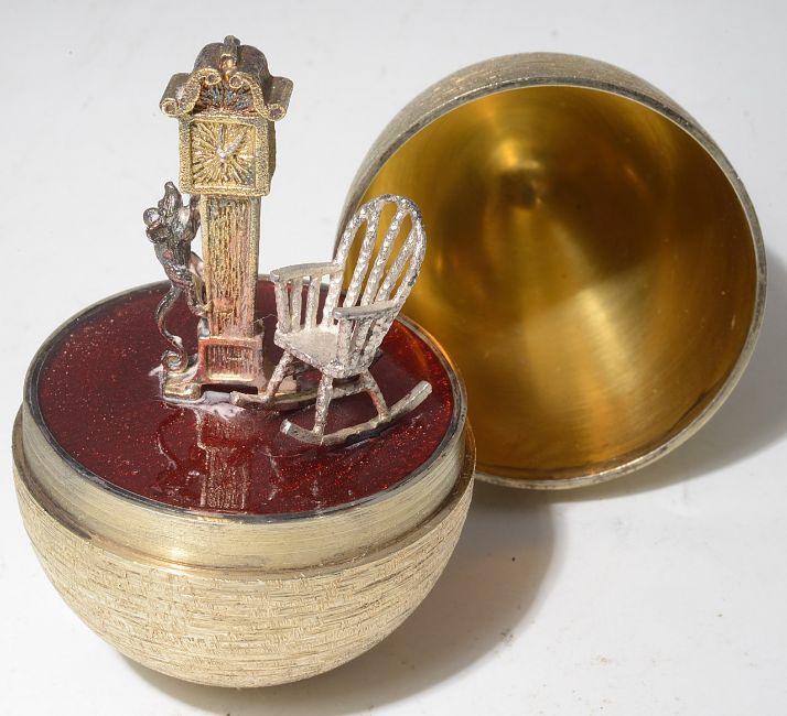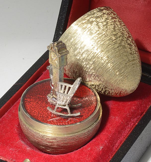 A silver-gilt "Hickory Dickory Dock Nursery Rhyme Egg", hallmarked London 1978