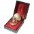 of ovoid form with textured body, opening to reveal a mouse running up a longcase clock flanked by a rocking chair, on a red enamelled ground, No. 106, in original fitted case.