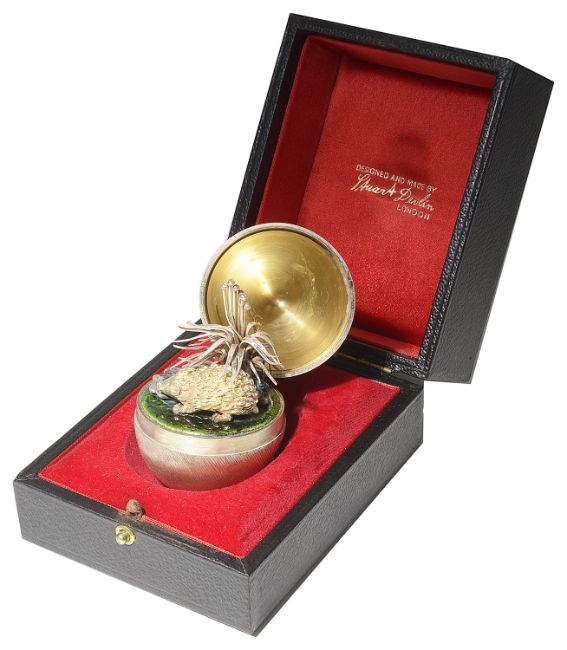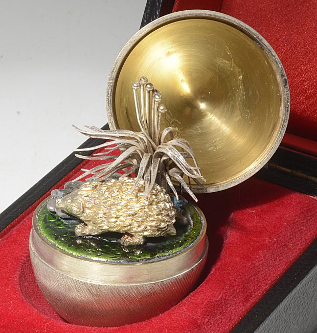 A silver-gilt "Hedgehog Surprise Egg", hallmarked London 1978