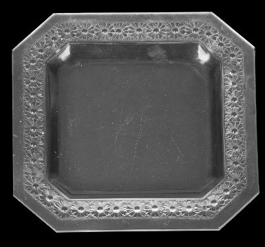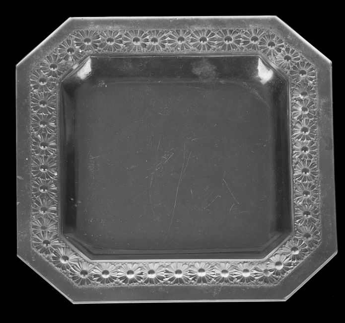 with canted corners, the rim moulded with a repeating daisy design, acid etched mark to base 'R LALIQUE FRANCE'