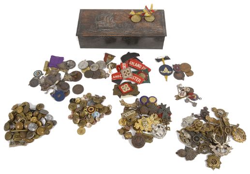 An interesting collection of WW1 and later cap badges and related items