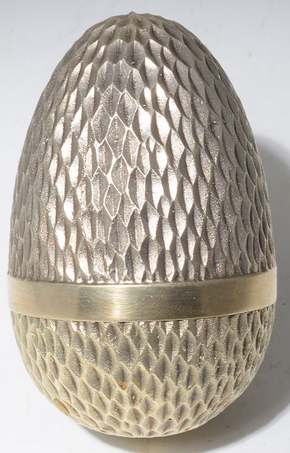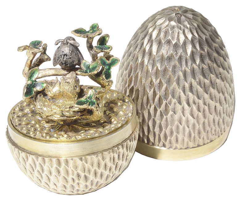 A silver-gilt "Bird feeding her chicks Surprise Egg", hallmarked London 1976
