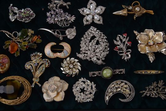 Condition: Overall reasonable condition, pins in tact, rhinestones mainly present