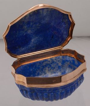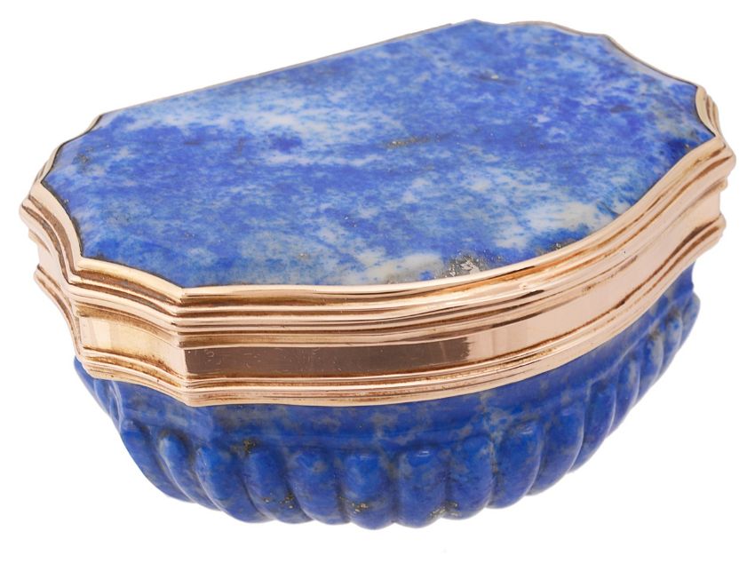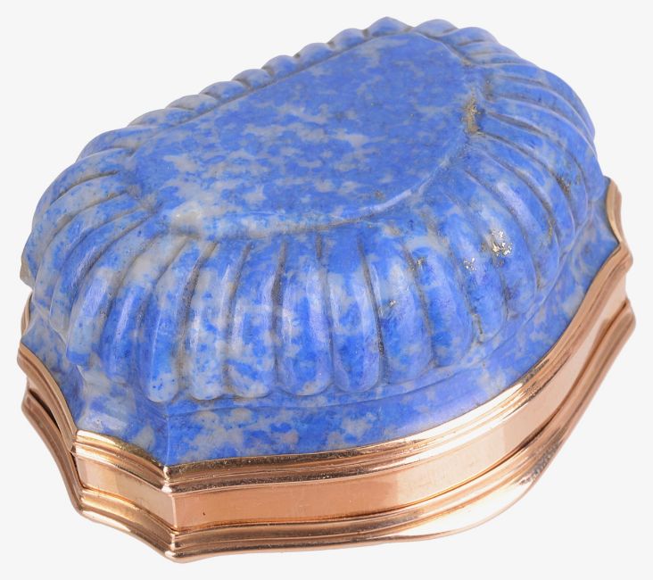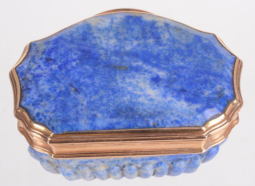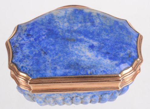 A 19th Century French 18ct gold mounted carved lapis lazuli snuff box