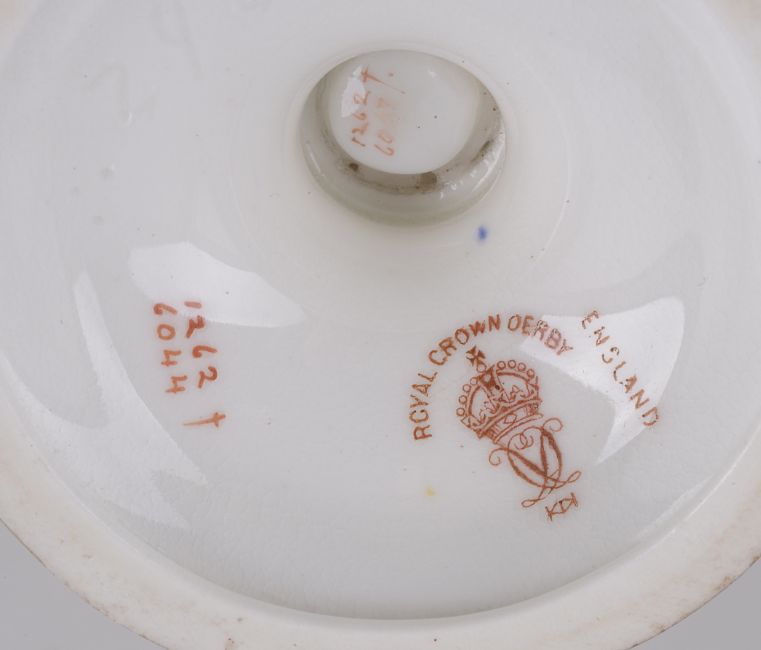 Condition: Worcester vase restored, Royal Crown Derby vase lacking cover