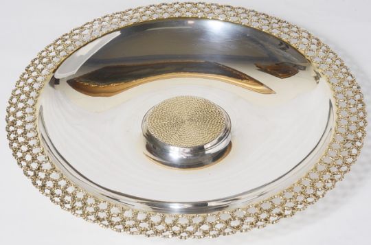 A parcel-gilt silver fruit dish, hallmarked London 1984