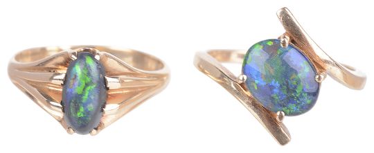 mount tests for gold,the oval opal in claw set mount, together with a 9ct (marks rubbed) tests for gold, opal set dress ring, associated box (2)