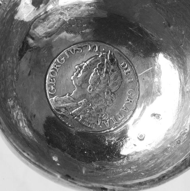 each with horn twist handle, with white metal bowls with coin bases, (2).