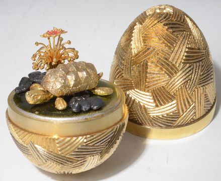 A silver-gilt "Tortoise Surprise Egg", hallmarked London 1979