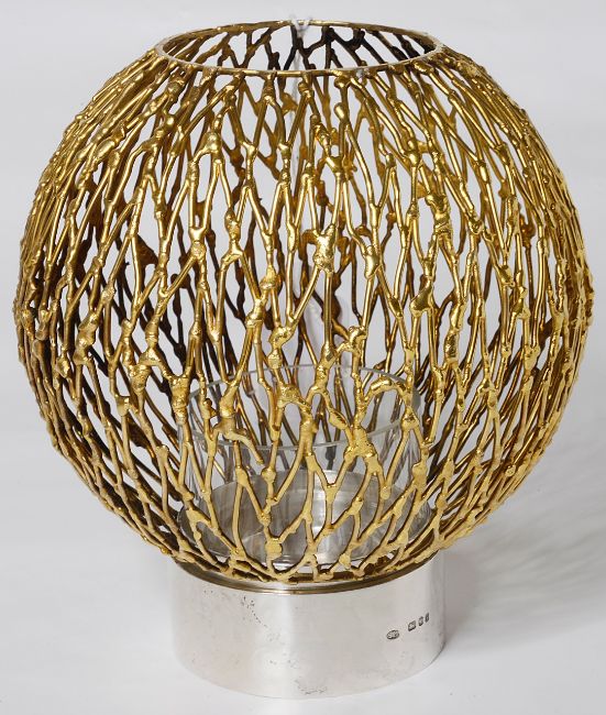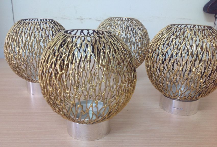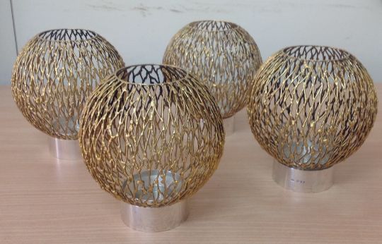 A set of four parcel-gilt-silver candle holders, hallmarked 1970